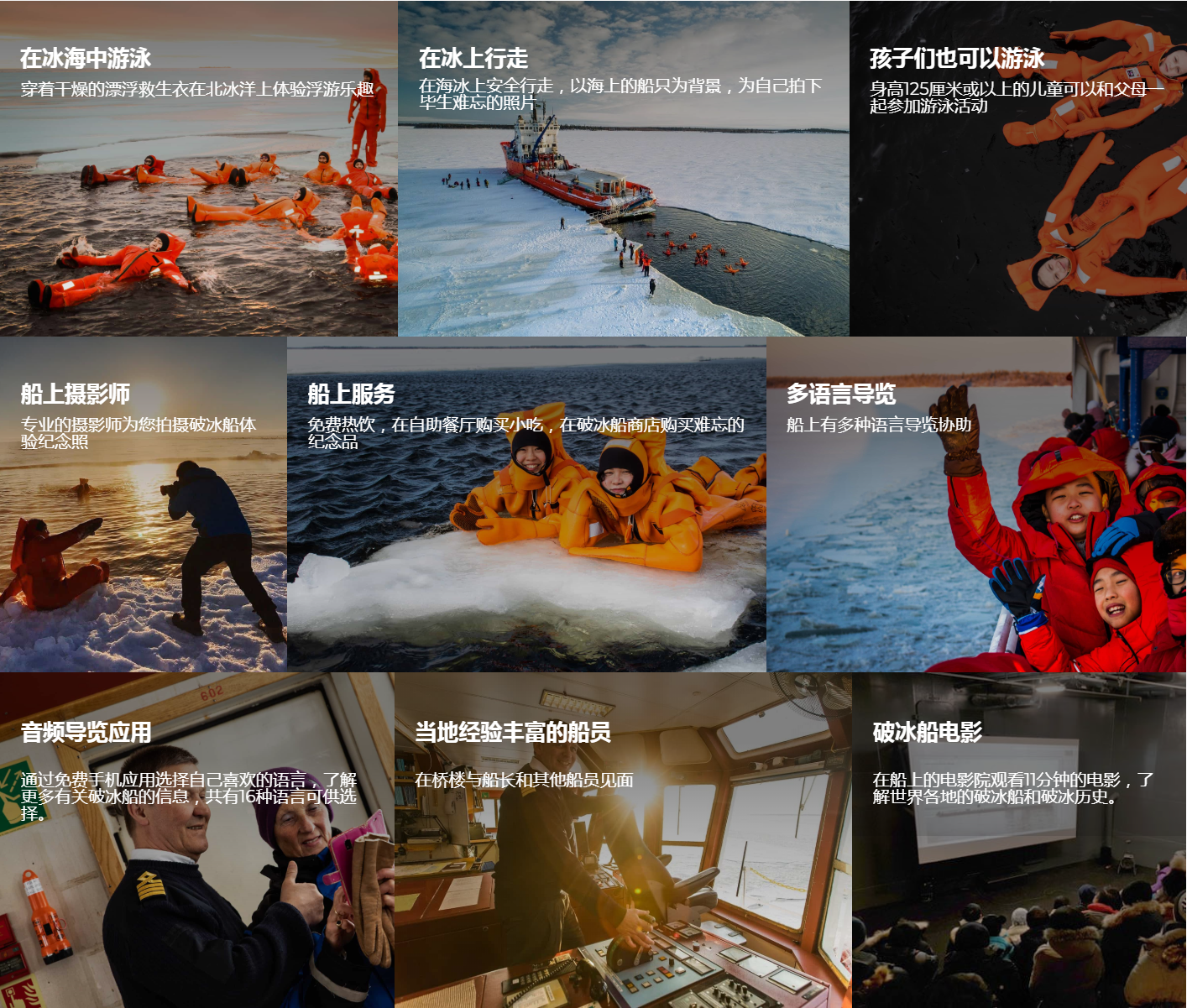 ***不同日期不同类型的破冰船巴士接送的时间均不同,请以确认单上的时间为准!下单时请备注需要的上下团地点!