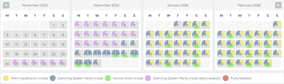 12月初的游轮在任何结冰条件下都能正常运行。请注意,冰及其厚度要到12月中旬才能保证。如果预订12月初的破冰船巡航,则默认乘客可以接受在可能较弱或“无冰”条件下的巡航。可能要到一月初才能在冰上行走。